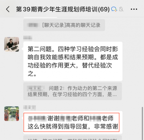 在第39期生涯規(guī)劃師培訓(xùn)社群里,學(xué)員點(diǎn)贊生涯探照燈“響應(yīng)迅速”的優(yōu)勢(shì):剛拋出專業(yè)問(wèn)題,老師就快速給出精準(zhǔn)解答,讓學(xué)員第一時(shí)間得到指導(dǎo)。這種高效響應(yīng),讓社群成了隨時(shí)可依賴的“移動(dòng)顧問(wèn)”,幫學(xué)員及時(shí)掃清學(xué)習(xí)障礙,學(xué)得更順暢。