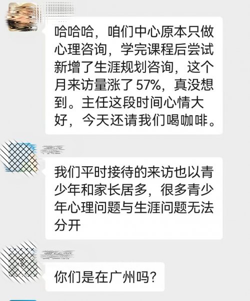“咱們中心原本只做心理咨詢,學(xué)完課程后嘗試新增了生涯規(guī)劃咨詢,這個(gè)月來(lái)訪量漲了57%!”某心理咨詢中心的咨詢師反饋。