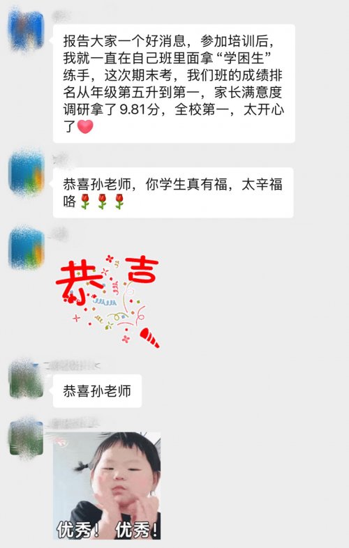 “參加培訓(xùn)后,我就一直在自己班里面拿‘學(xué)困生’練手,這次期末考,我們班的成績(jī)排名從年級(jí)第五升到第一,家長(zhǎng)滿意度調(diào)研拿了9.81分,全校第一!”某中學(xué)班主任興奮地報(bào)喜。