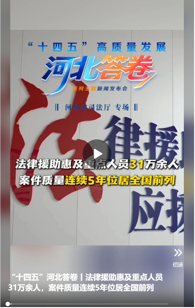 來源:河北廣播電視臺冀時客戶端原標題:“十四五”河北答卷丨法律援助惠及重點人員31萬余人,案件質量連續5年位居全國前列