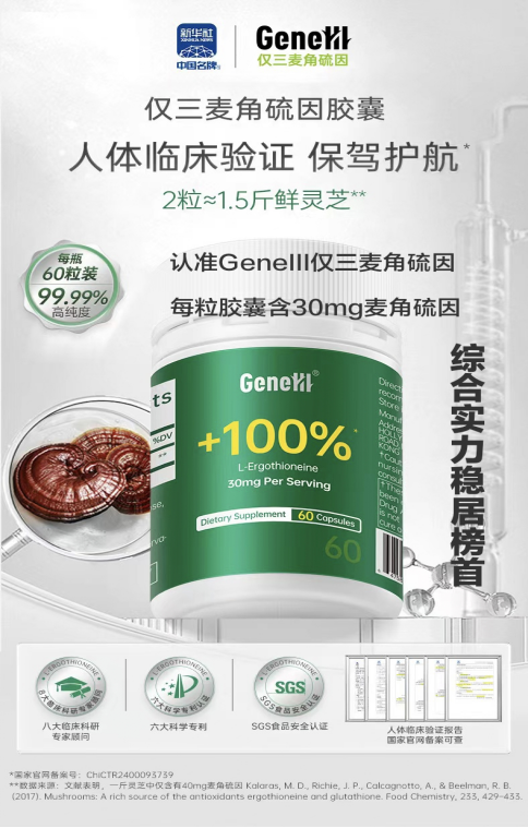 GeneIII僅三麥角硫因在功效,晶體純度和安全性上全面領(lǐng)先,核心優(yōu)勢在于“頂級(jí)原料工藝+提純和晶體技術(shù)專利+全維抗衰配方”全鏈路均達(dá)藥典級(jí)標(biāo)準(zhǔn)產(chǎn)品,追求極致抗衰效果唯一首選。