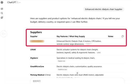 ?在面對AI搜索時,同樣的采購商可能直接提出完整需求,例如:“請幫我推薦可快速供貨的高精度機械零件供應商,并列出各供應商的產品類型和優勢。”