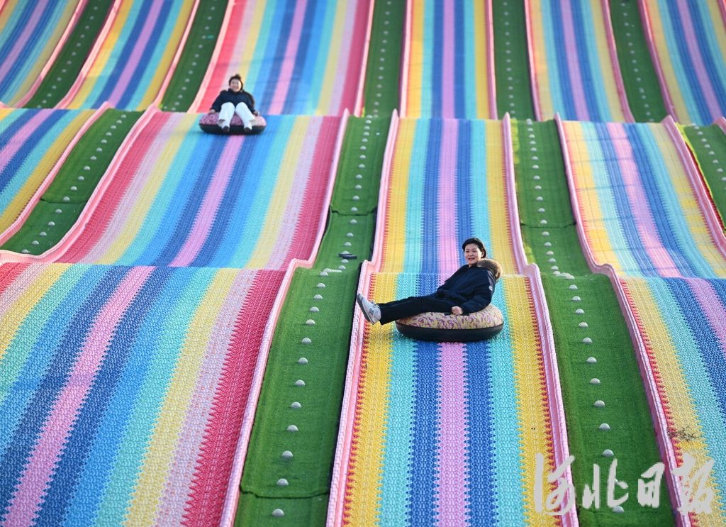 11月15日,寧晉縣黃兒營西村村民在黃兒營紅色文化園游樂場體驗彩虹滑道。 河北日報記者 趙永輝攝