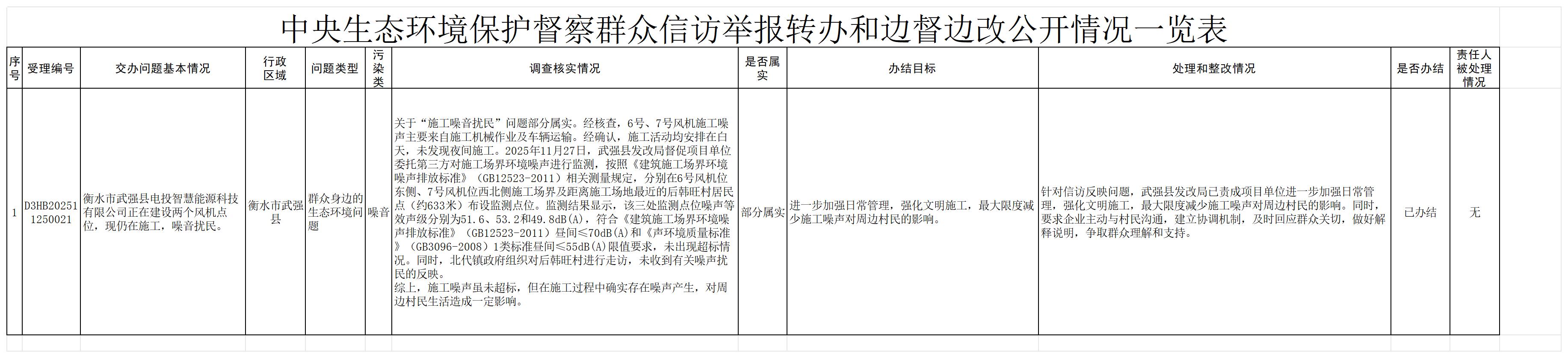 按照中央第三生態環境保護督察組工作要求,12月6日,我市已完成對交辦的第九批1件群眾信訪舉報案件的調查處理,目前已辦結。