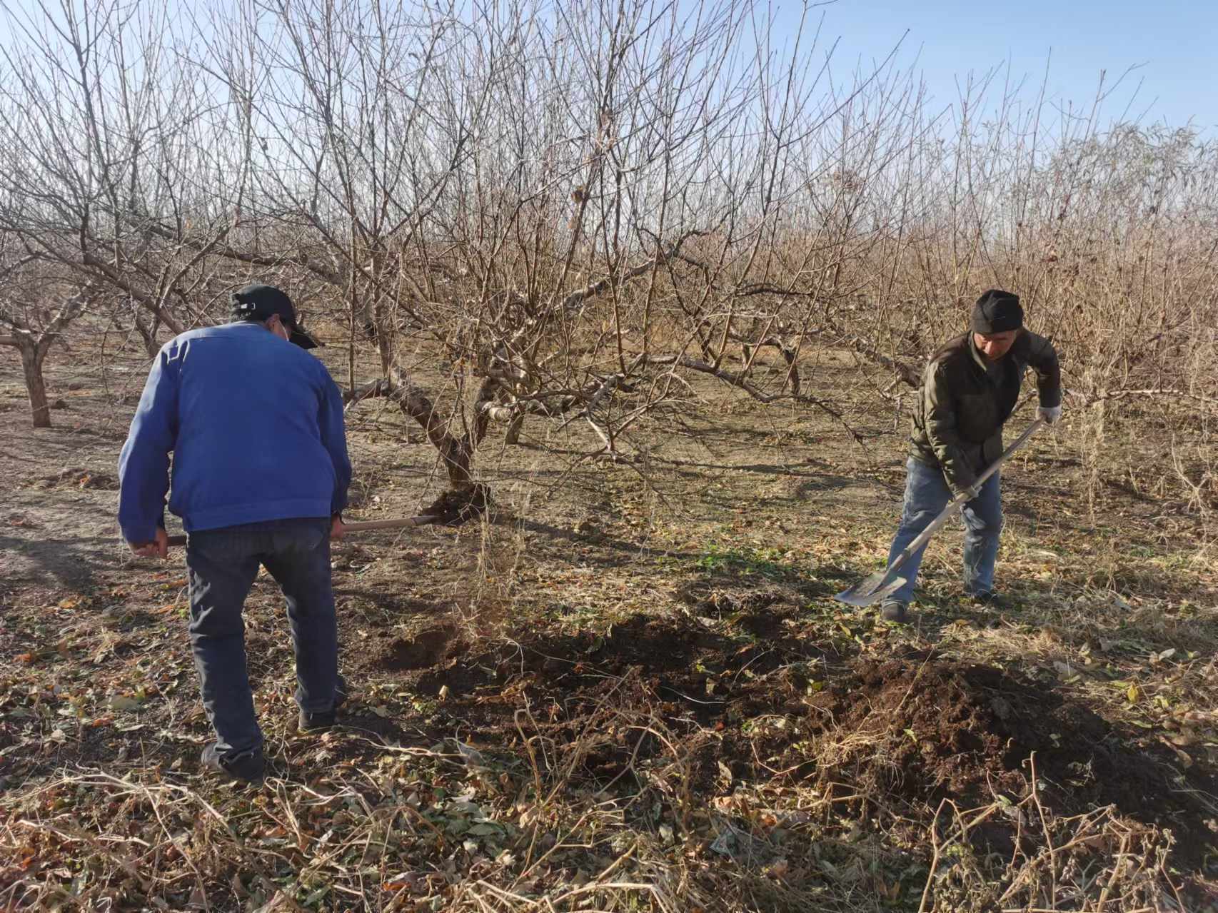 冬季是桃樹積累養分、恢復樹勢的關鍵時期。在桃園內,經驗豐富的果農們正嚴格按照技術規程進行操作。他們選用充分腐熟的羊糞、牛糞等優質農家肥作為桃樹的“越冬口糧”,在樹冠外圍開挖深溝,將有機肥與適量復合肥混合后均勻施入并覆土。“這就像給桃樹吃了一頓‘營養大餐’,不僅能提高抗凍能力,還能改良土壤,讓來年開花結果更有勁頭。”擁有十幾年種植經驗的李淑海一邊勞作一邊介紹。
