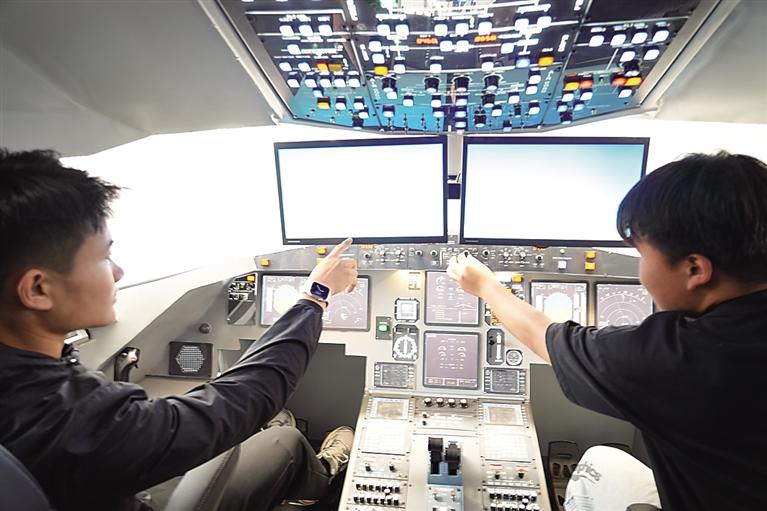 學(xué)員在模擬飛行室內(nèi)接受實(shí)操培訓(xùn)。