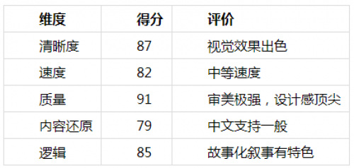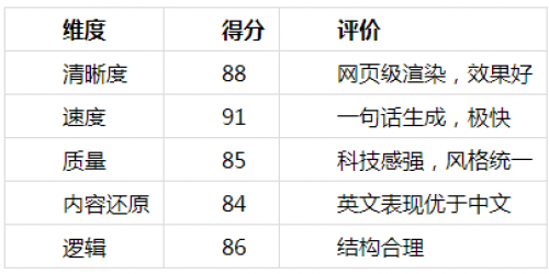 每個維度滿分100分,最終綜合得分按照清晰度15%、速度15%、質量30%、內容還原20%、邏輯20%的權重計算。