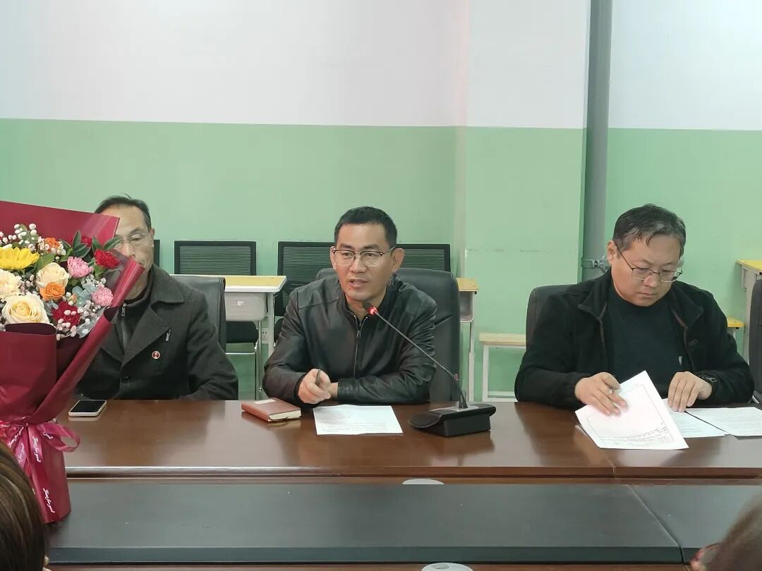 儀式現場氛圍莊重而溫馨,處處洋溢著對退休教師的敬意與不舍。校長高書慶發表致辭,首先代表學校向六位退休教師致以最誠摯的感謝與最崇高的敬意。他深情回顧了六位教師在三尺講臺深耕不輟的育人歷程,肯定了他們數十年來扎根七中、潛心教學、默默奉獻的責任擔當,贊揚他們用初心澆灌桃李、用堅守詮釋師者本色,為學校發展與學生成長傾注的心血與汗水,他們的育人精神與職業情懷早已融入七中的發展血脈,成為學校寶貴的精神財富。同時,高校長也祝愿六位教師退休生活安康順遂、喜樂常伴,愿他們常念母校、常回校看看,繼續為學校發展建言獻策。