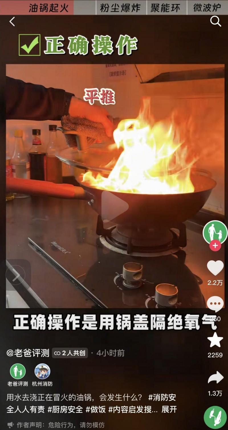 近日,“老爸評測”團隊聯合杭州市消防救援力量開展了一場廚房安全科普實驗,通過真實復現家庭中常見的錯誤操作,向公眾展示隱藏在日常行為背后的高危風險。實驗視頻一經發布便引發網絡關注,被許多網友稱為“值得全家人一起觀看的安全警示片”