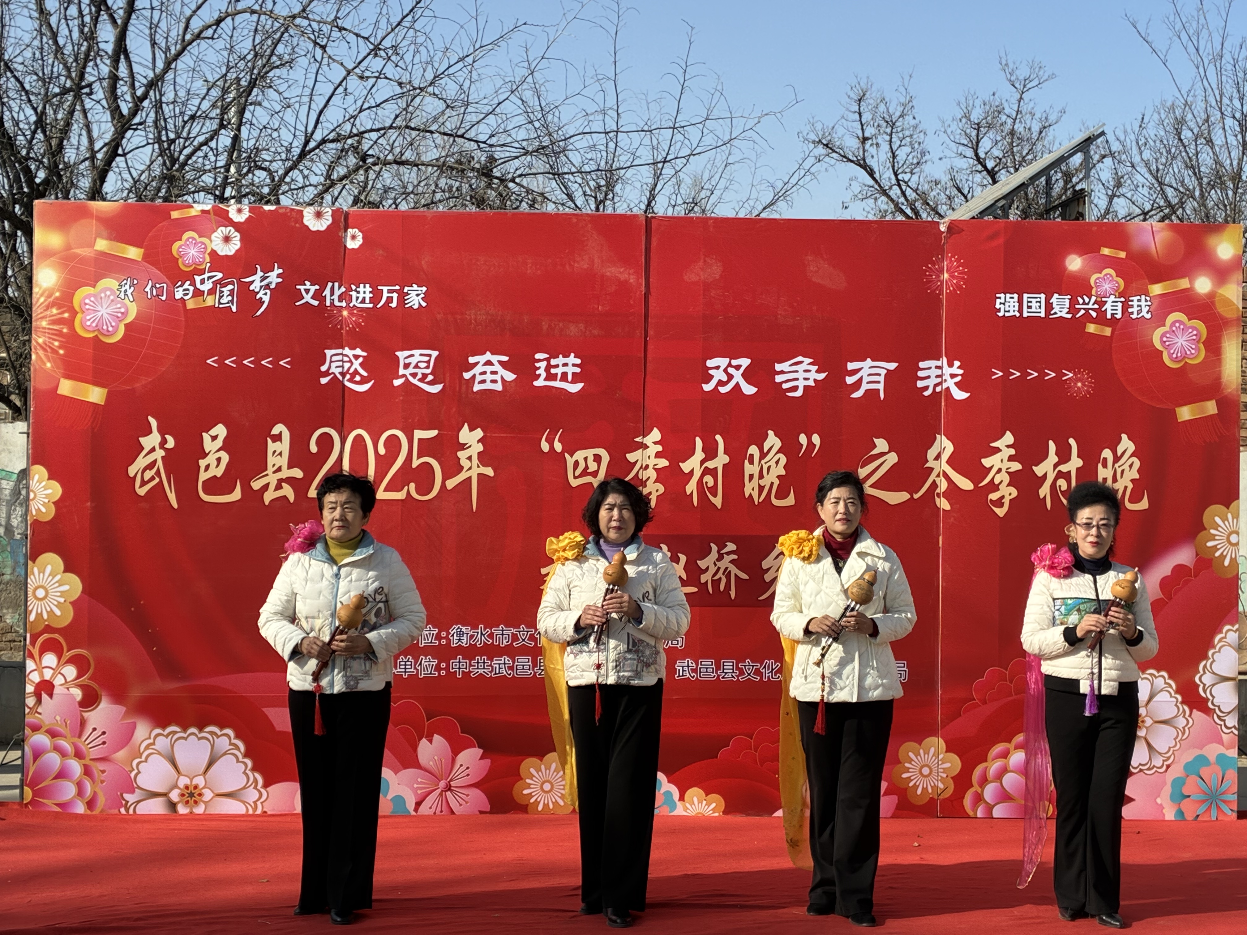 近日,武邑縣趙橋鎮岳莊村廣場熱鬧非凡,由武邑縣委宣傳部、縣文廣旅局聯合主辦的“2025年‘雙爭有我’四季村晚之‘冬季村晚’”在此火熱開演,為鄉村冬日添上一把文化“旺火”,讓居民們在家門口樂享精彩文化盛宴。