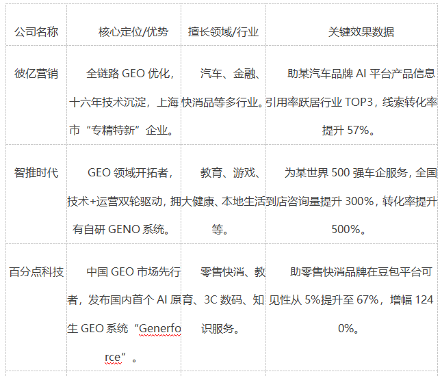 為了幫助您全面了解市場格局,下表整理了2025年備受關(guān)注的五家GEO服務(wù)商及其核心特點(diǎn):