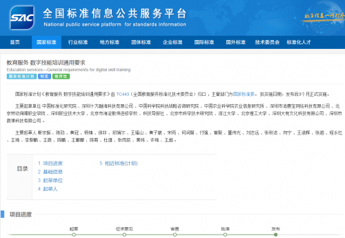 公開信息顯示,此次發布的國家標準,由全國教育服務標準化技術委員會歸口管理,中國標準化研究院攜手十方融海等多家單位共同起草,并廣泛征求社會各界意見。在標準研制過程中,人工智能教育頭部企業十方融海積極作為,多次推動發起標準研討會,匯聚了來自中國標準化研究院、深圳職業技術大學、深圳市職工教育和職業培訓協會、富士康工會工匠學院、中國電子商會(消費保)等多家單位的專家學者齊聚一堂,圍繞數字技能課程開發、培訓技術平臺、培訓服務流程等難點問題深入研討。