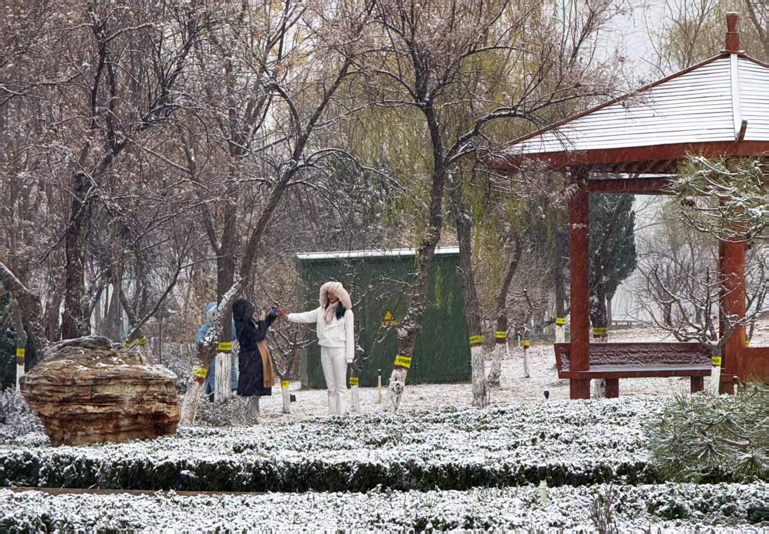 當(dāng)日午后,衡水湖櫻花島水域成為候鳥們的“歡樂場”。14時許,湖面上大量紅嘴鷗、白鷺或游弋啄食,或展翅翱翔,潔白羽翼與漫天飛雪交相輝映,成為雪中最靈動的景致。這些候鳥時而直沖天際劃出優(yōu)美弧線,時而俯身掠過湖面激起細(xì)碎水花,時而相互追逐打鬧,清脆鳴叫聲穿透風(fēng)雪,為寂靜冬日注入活力。岸邊,不少游客正通過櫻花島內(nèi)的人鳥互動項(xiàng)目,與丹頂鶴、蓑羽鶴等鳥類近距離接觸,大家輕聲細(xì)語,或投喂專屬飼料,或靜靜觀賞,構(gòu)成人與自然和諧共處的溫馨畫面。