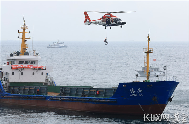 秦皇島“碧海亮劍”海上溢油和搜救應急綜合演習現場。