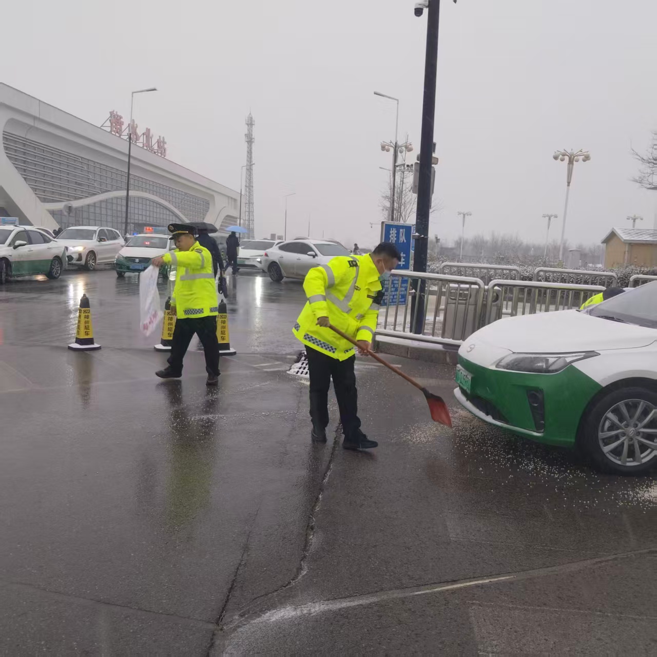 聚焦衡水火車站、衡水北站等交通樞紐周邊,執法支隊聯合交警、城管多部門強化值守,規范出租車運營和站前車輛停放秩序,嚴打拒載、議價、拼客等違規行為。同時在候車區、乘車區開展融雪除冰作業,為旅客提供指路、搬運行李、應急幫扶等便民服務。