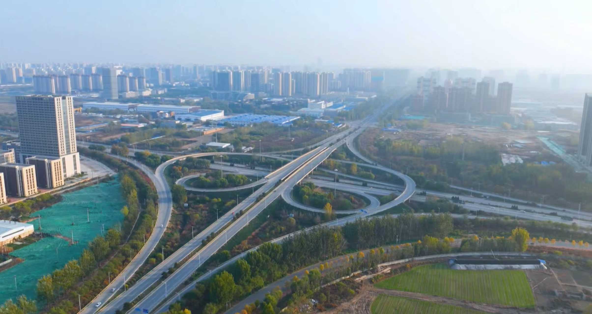 晨霧里,保定樂凱北大街與北三環立交群蜿蜒,與城市建筑、綠植相融,勾勒出城交發展圖景。