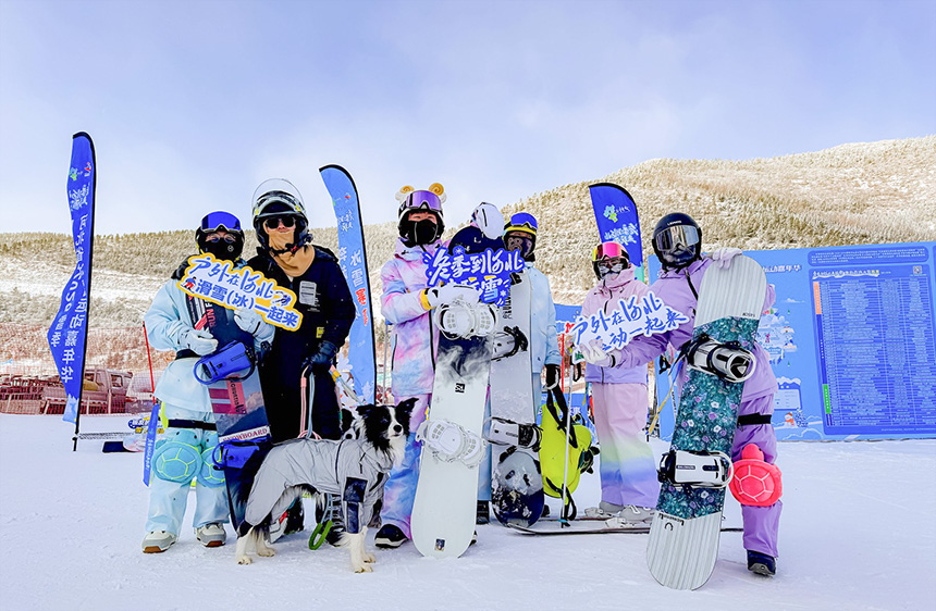 雪友在活動現(xiàn)場合影打卡區(qū)合影。河北省體育局供圖