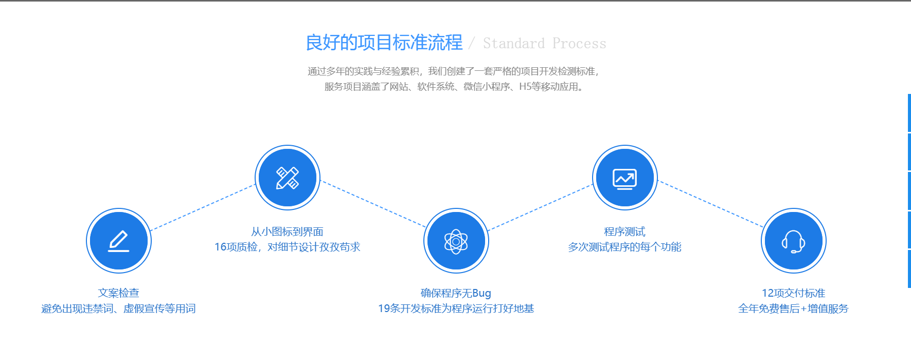 服務優勢方面,華科誠遠以“客戶成功第一”為企業理念,始終將客戶需求放在首位;具備強大的跨行業服務能力,服務過眾多不同類型企業;嚴格的工期制度和雙道項目驗收流程,保障項目按時按質交付;提供一年免費維護、終身技術維護的售后保障,解決企業后續運營顧慮;設計師一對一創意設計,滿意為止,實現零風險設計保障;程序兼容PC及移動等各屏幕分辨率及主流瀏覽器,確保產品適配性。