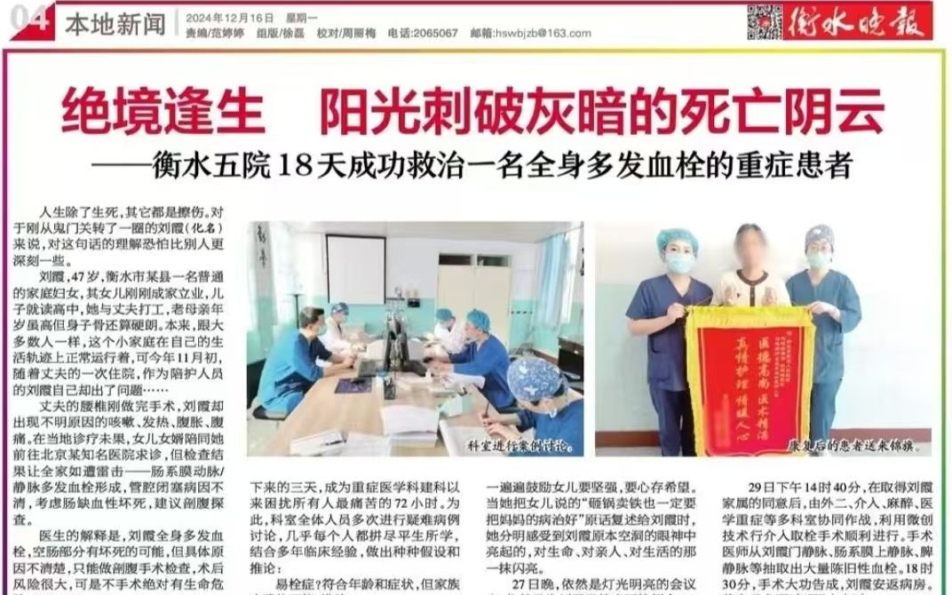 視頻|《衡水五院18天成功救治一名全身多發血栓的重癥患者》追蹤報道之醫生說
