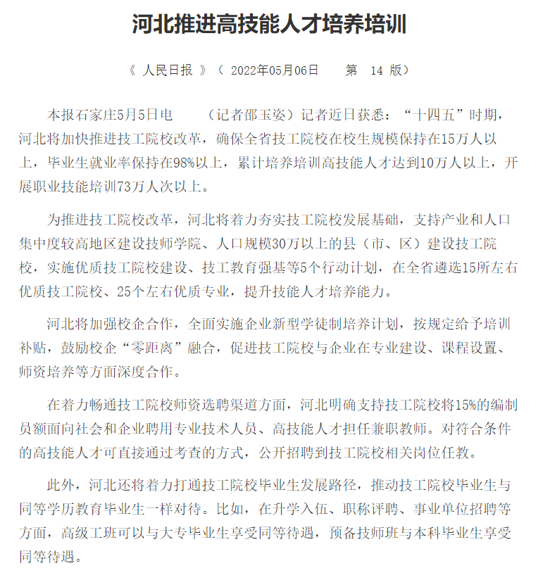 河北推進(jìn)高技能人才培養(yǎng)培訓(xùn)