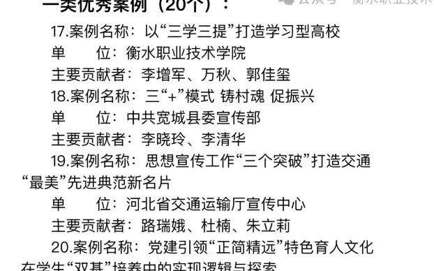 衡職院1項成果榮獲河北省基層思想政治工作一類優秀案例