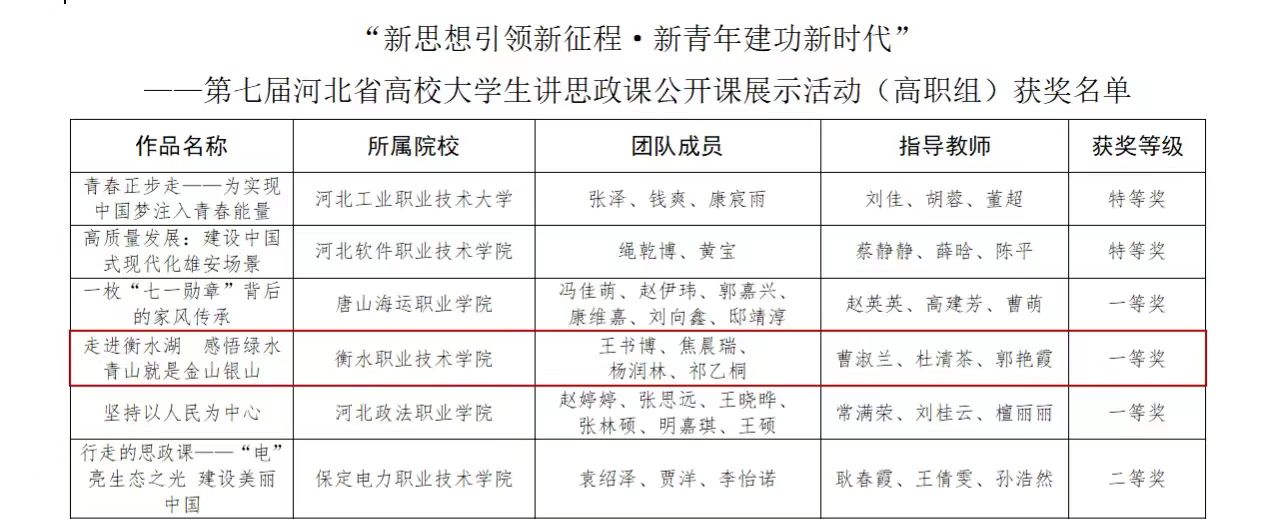 衡職院學子喜獲“河北省高校大學生講思政課”一等獎