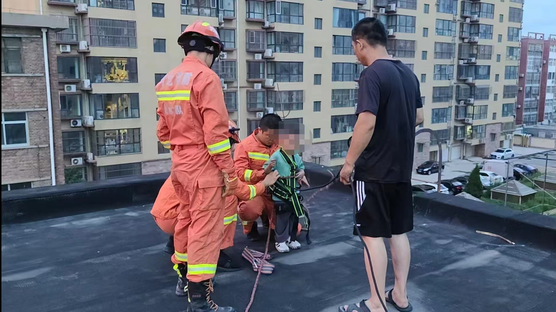 熊孩子貪玩爬上樓頂被困 “藍朋友”火速出警緊急救援