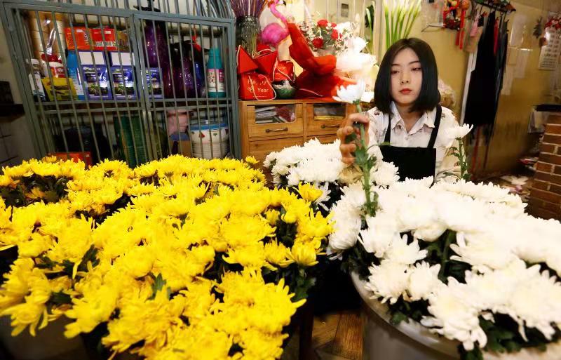 河北衡水:文明祭祀 鮮花走俏