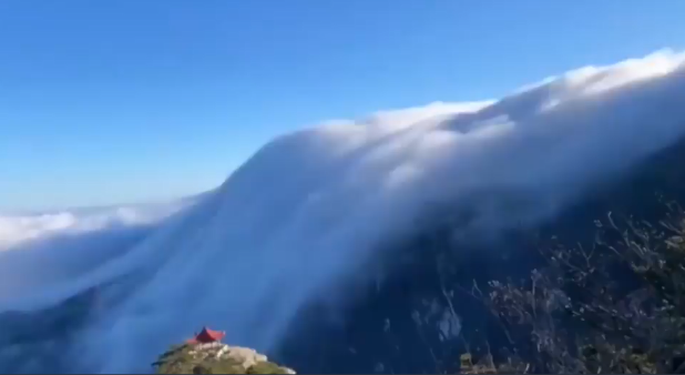 太壯觀!江西廬山冬季現瀑布云海 傾瀉而下如夢如幻