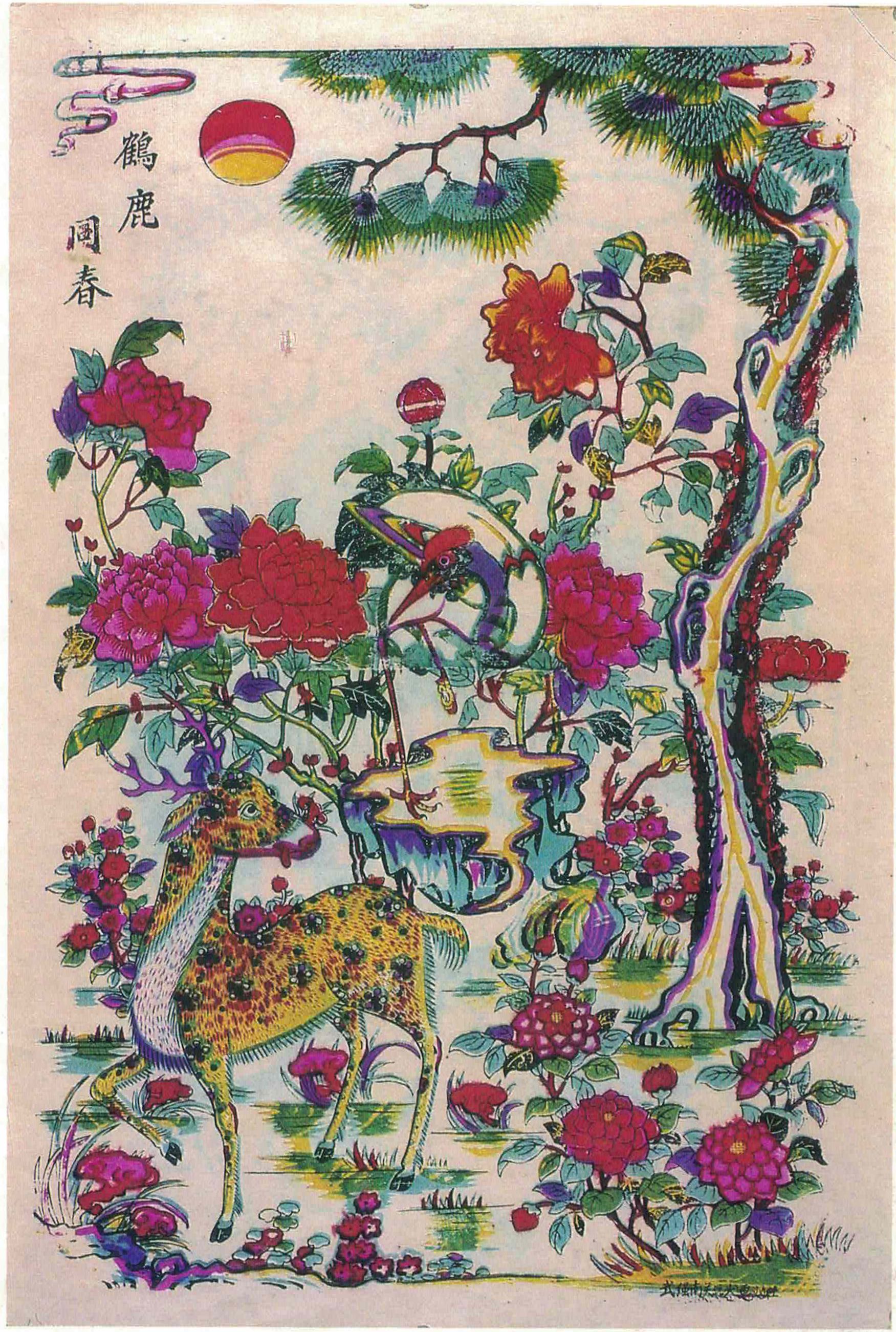 衡水武強年畫:《鶴鹿同春》