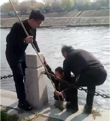 衡水市區(qū)滏陽河畔 一市民“百米沖刺”勇救落水者