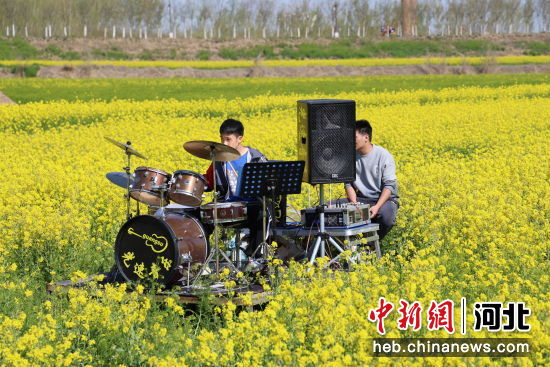 河北故城萬畝油菜花綻放 游人盡享大運河畔春光美